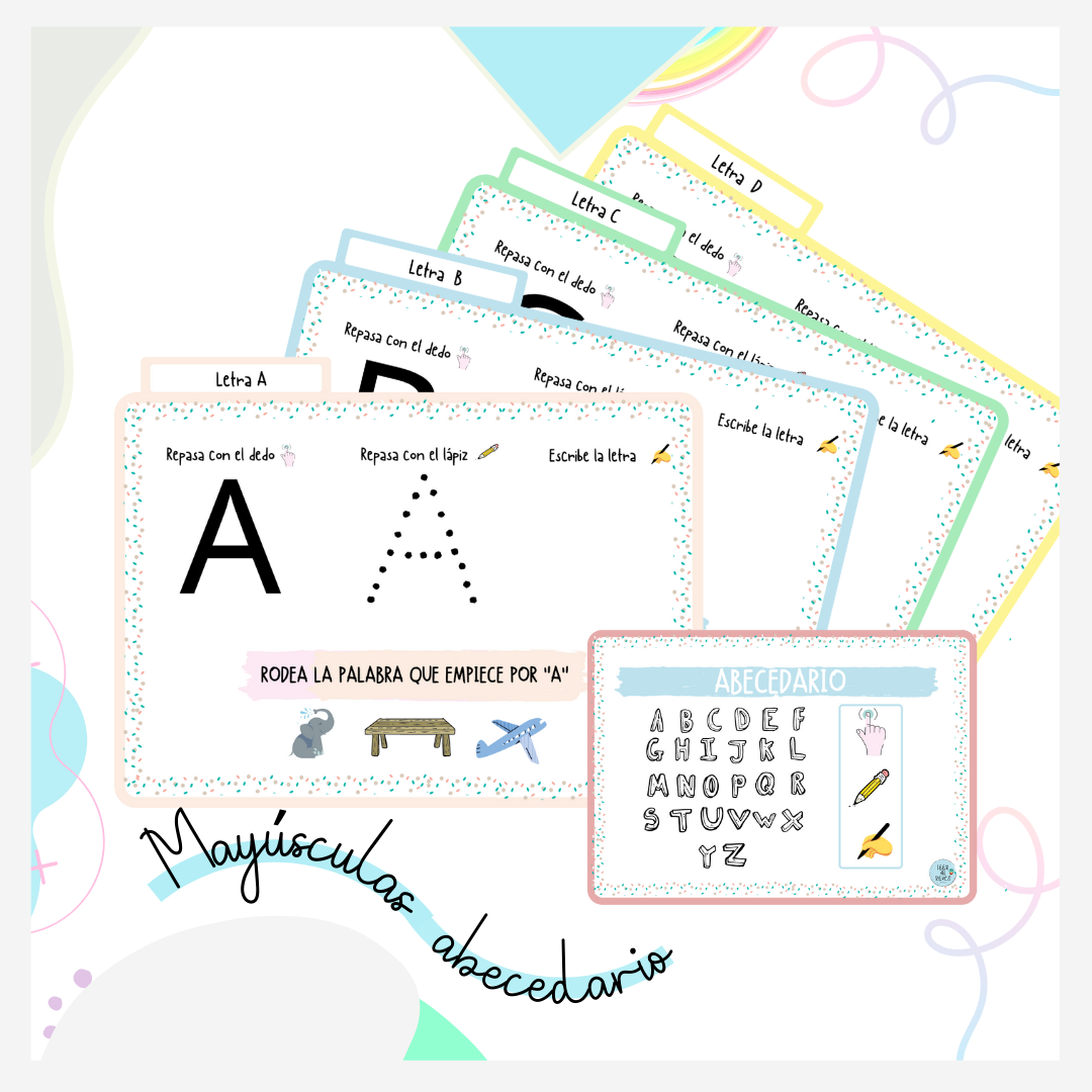 Recurso destinado a trabajar, en mayúscula, todas las letras del abecedario. Además, se trabaja la grafía y conciencia fonológica.