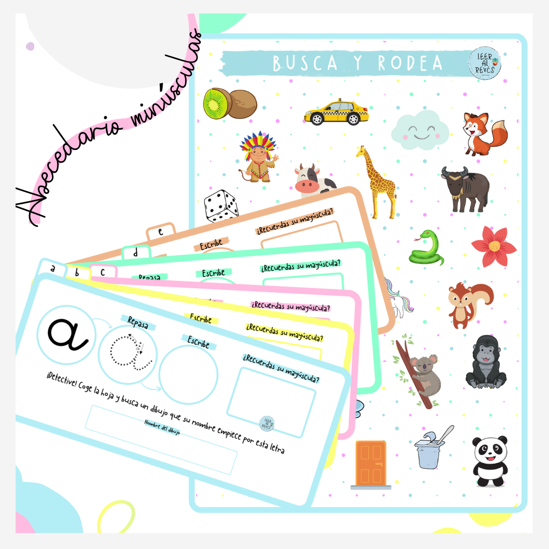 Recurso destinado a trabajar, en minúscula, todas las letras del abecedario. También se repasan las mayúsculas y la conciencia fonológica y la atención a través de un juego de búsqueda.
