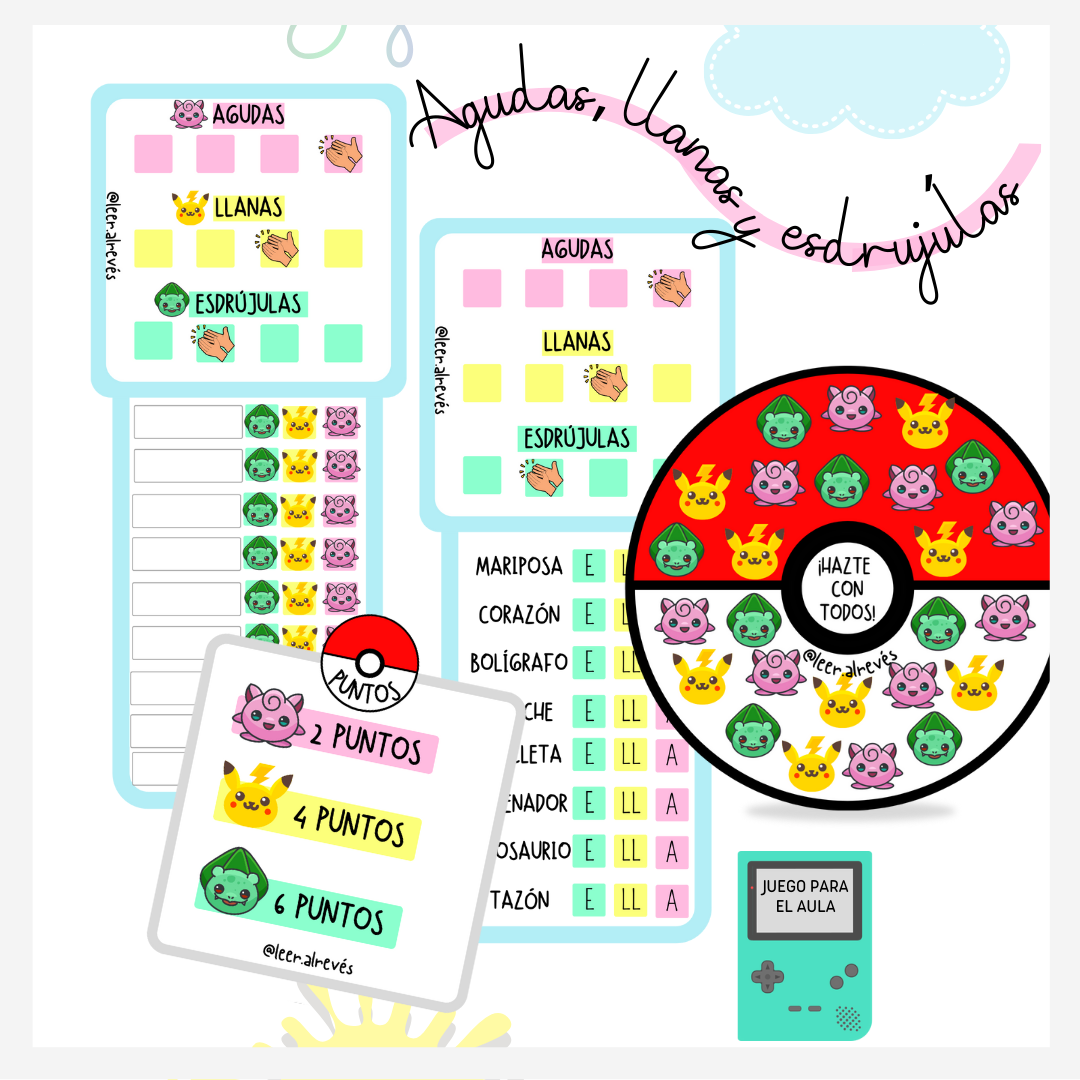 Nivel 3️⃣ ¡a jugar!: cada alumno (o por grupos) elaboran su plantilla con palabras que consideren. Juegan a ver quien gana mas pokemon (puntos) pero… ¡cuidado! Si no saben el tipo de palabra que es, pierden puntos.