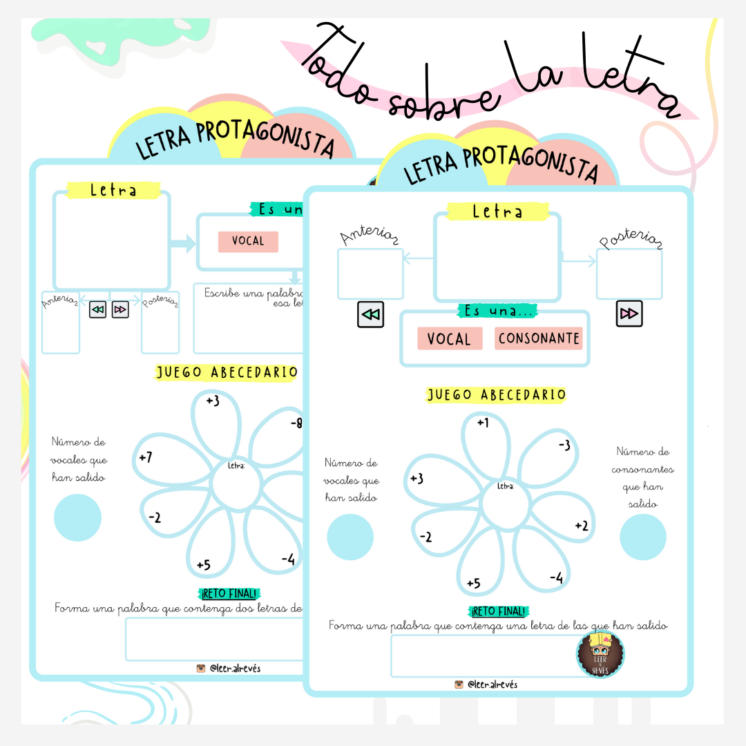 Dos plantillas con diferentes niveles de dificultad que permiten trabajar las letras del abecedario, la conciencia fonológica y la lectoescritura de forma divertida. Además, de forma conjunta, se trabaja el área de matemáticas con la suma y la resta.